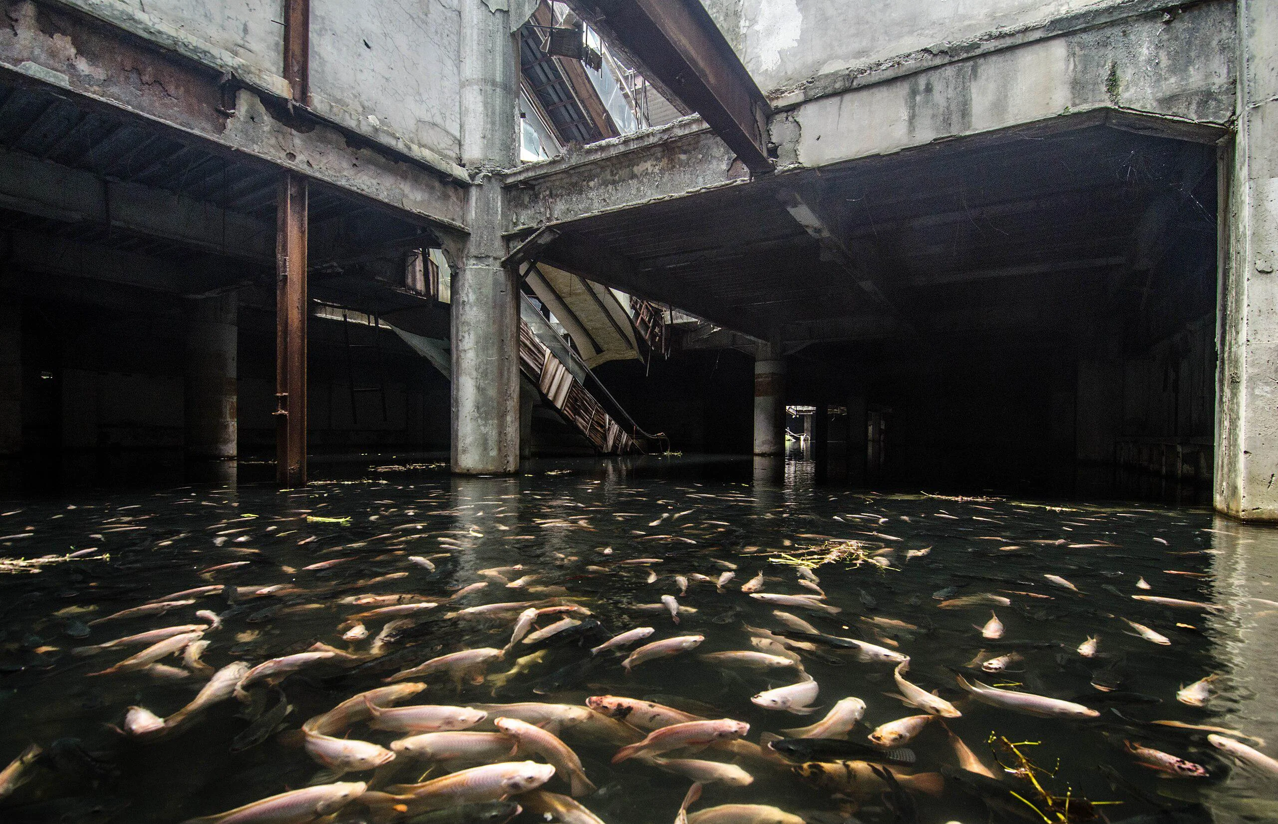 Word spread and the fish multiplied. By the mid-2010s, local estimates put the population at roughly 3,000, turning the mall’s atrium into an unlikely urban ecosystem. People dropped by to toss feed from the edges of broken stairwells. On sunny days, broad-backed catfish rolled near the surface like velociraptors in slow motion. Where shop mannequins once posed, schools of glinting tilapia skittered in the light.